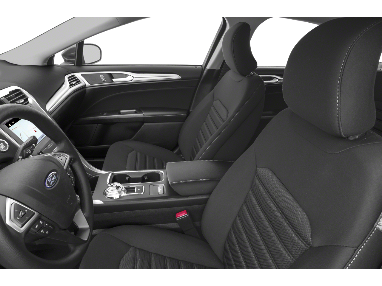 This Fusion is well Equipped with 6-Speed Automatic, 4-Wheel Disc Brakes, 6 Speakers, ABS brakes, Air Conditioning, Alloy wheels, AM/FM radio: SiriusXM, Auto High-beam Headlights, Auto Start-Stop Technology, Auto-dimming Rear-View mirror, Automatic temperature control, Brake assist, Bumpers: body-color, Cloth Front Bucket Seats, Compass, Delay-off headlights, Driver door bin, Driver vanity mirror, Dual front impact airbags, Dual front side impact airbags, Electronic Stability Control, Emergency communication system: SYNC 3 911 Assist, Exterior Parking Camera Rear, Four wheel independent suspension, Front anti-roll bar, Front Bucket Seats, Front Center Armrest, Front dual zone A/C, Front reading lights, Fully automatic headlights, Illuminated entry, Knee airbag, Low tire pressure warning, Occupant sensing airbag, Outside temperature display, Overhead airbag, Overhead console, Panic alarm, Passenger door bin, Passenger vanity mirror, Power door mirrors, Power driver seat, Power steering, Power windows, Radio data system, Radio: AM/FM/MP3 Stereo, Rain sensing wipers, Rear anti-roll bar, Rear reading lights, Rear seat center armrest, Rear window defroster, Remote keyless entry, Security system, SiriusXM Radio, Speed control, Speed-sensing steering, Speed-Sensitive Wipers, Split folding rear seat, Steering wheel mounted audio controls, SYNC 3 Communications & Entertainment System, Tachometer, Telescoping steering wheel, Tilt steering wheel, Traction control, Trip computer, Variably intermittent wipers, and Wheels: 17 Sparkle Silver-Painted Aluminum.