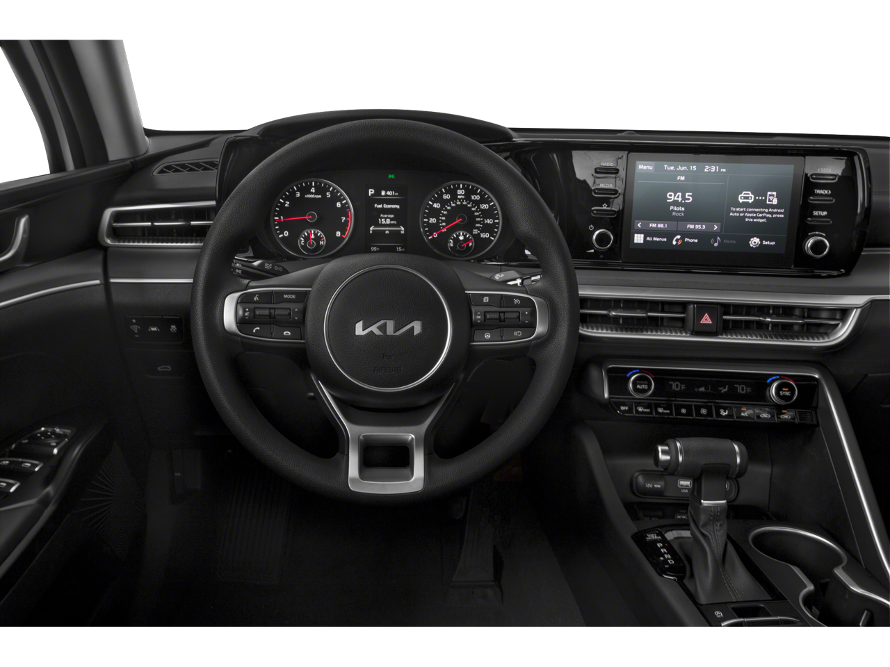Convenience and connectivity are also at the forefront of the K5 GT-Line's design. The Navigation System, Apple CarPlay & Android Auto, and Steering wheel mounted audio controls make it easy to stay connected and in control.