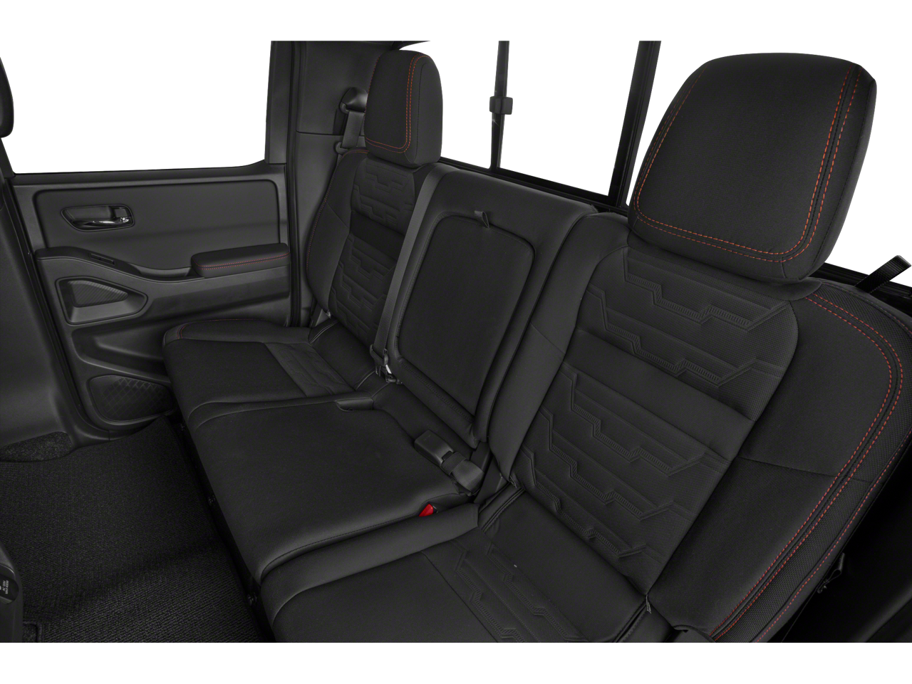 The Frontier's interior is designed for both comfort and convenience, with a power-adjustable driver's seat, a leather-wrapped shift knob, and a tilt steering wheel. The split-folding rear seat provides ample space for your passengers and cargo, while the Off-Road Style Step Rails and the PRO-4X Mud Flaps add a touch of rugged style.