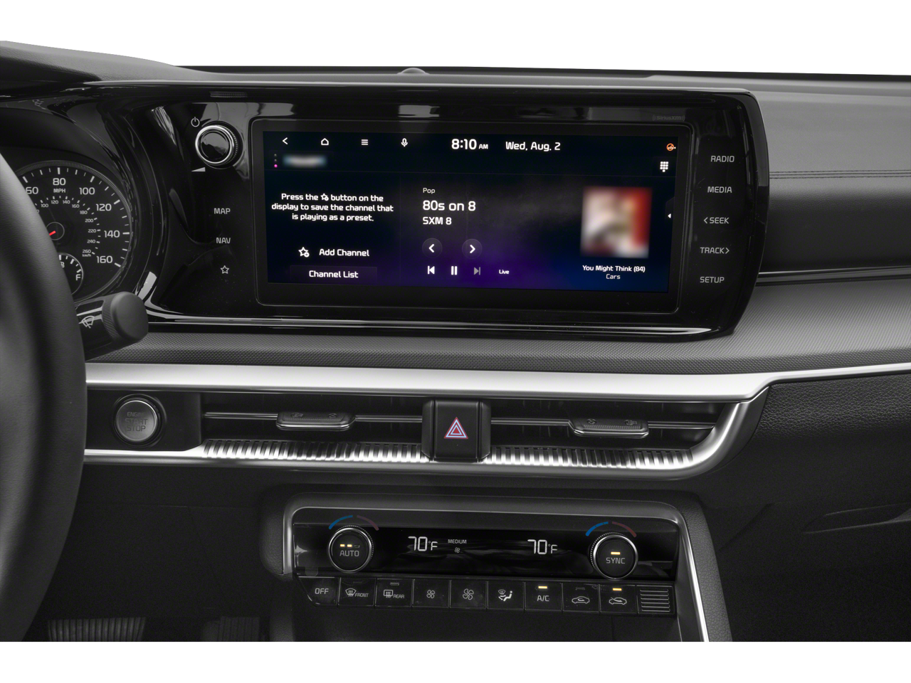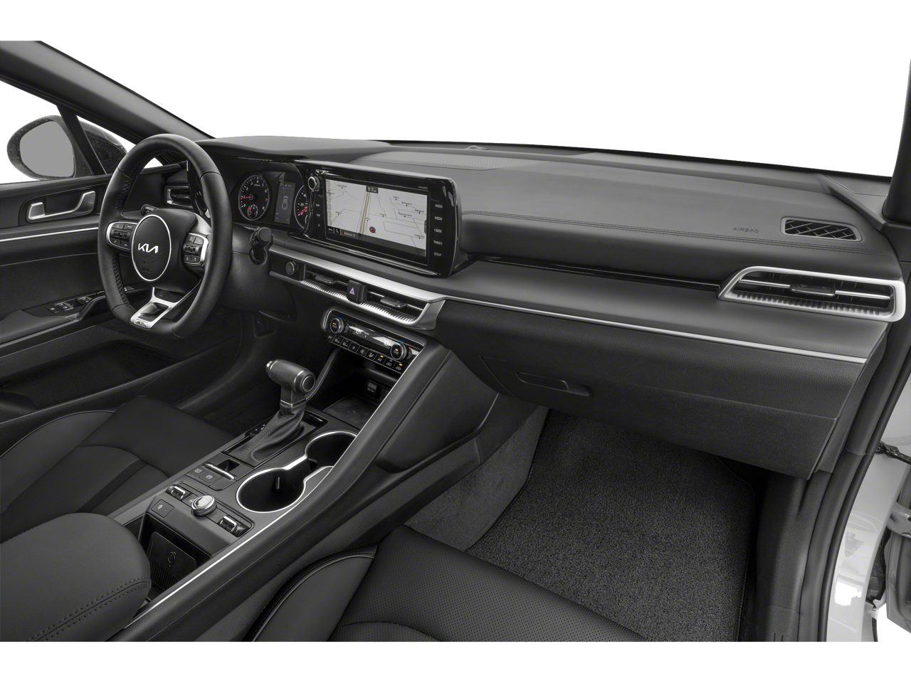 The K5 GT-Line's advanced technology features, including the Navigation System, 6-Speaker Audio System, and Wireless Apple CarPlay & Android Auto, keep you connected, entertained, and informed on every journey. The Dual-Zone Automatic Climate Control and Rear Window Defroster ensure a comfortable cabin environment, no matter the weather.